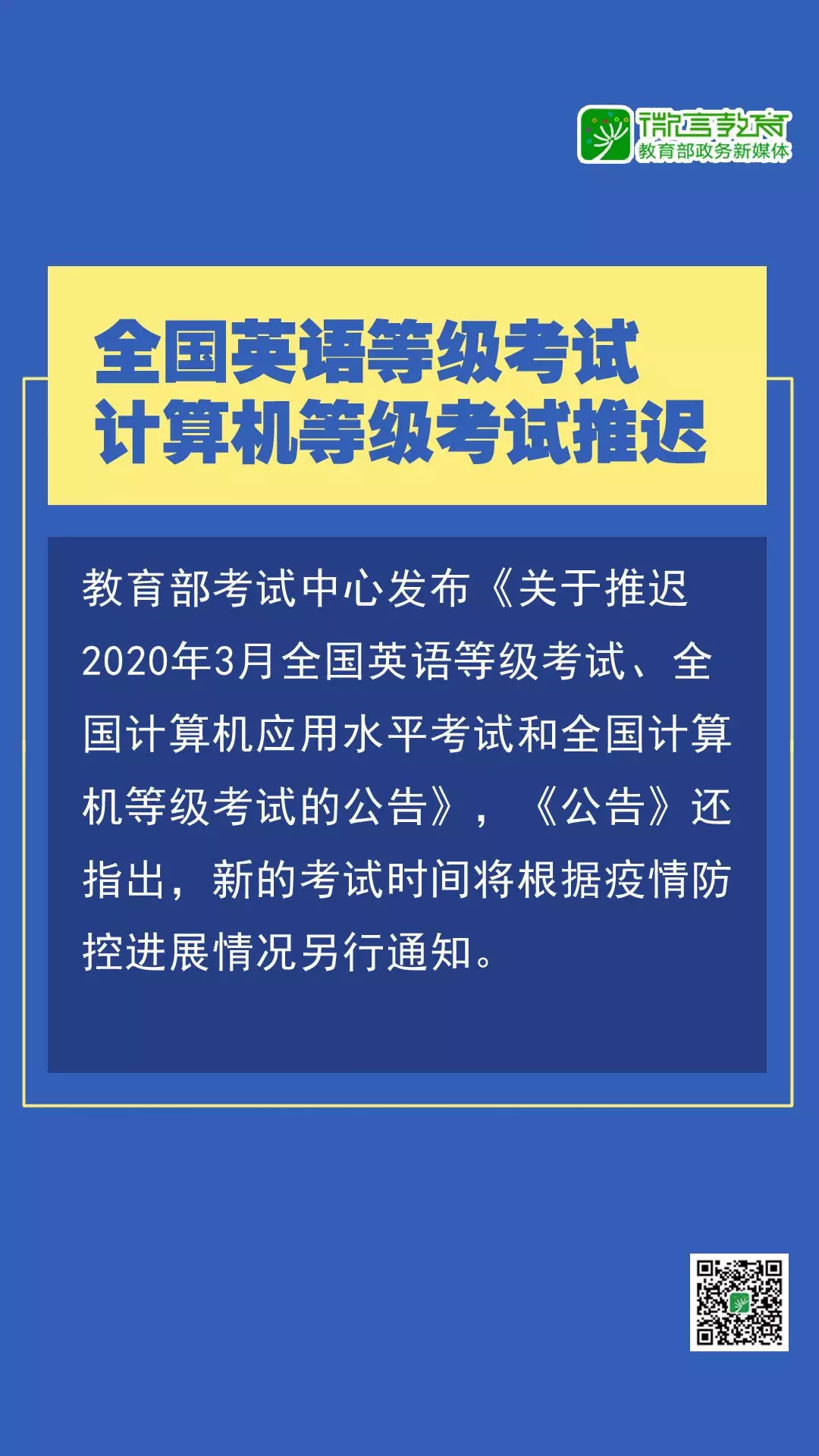 為貫徹落實國家和我省對新型冠狀病毒感染的肺炎疫情防控有關(guān)工作的部署和要求,切實保障廣大考生和考試工作人員生命安全和身體健康,經(jīng)研究決定,推遲原定于3月7-8日舉行的普通高考英語聽說考試和本科插班生考試(含三二分段專升本轉(zhuǎn)段考試)。具體時間安排視疫情控制情況另行通知。