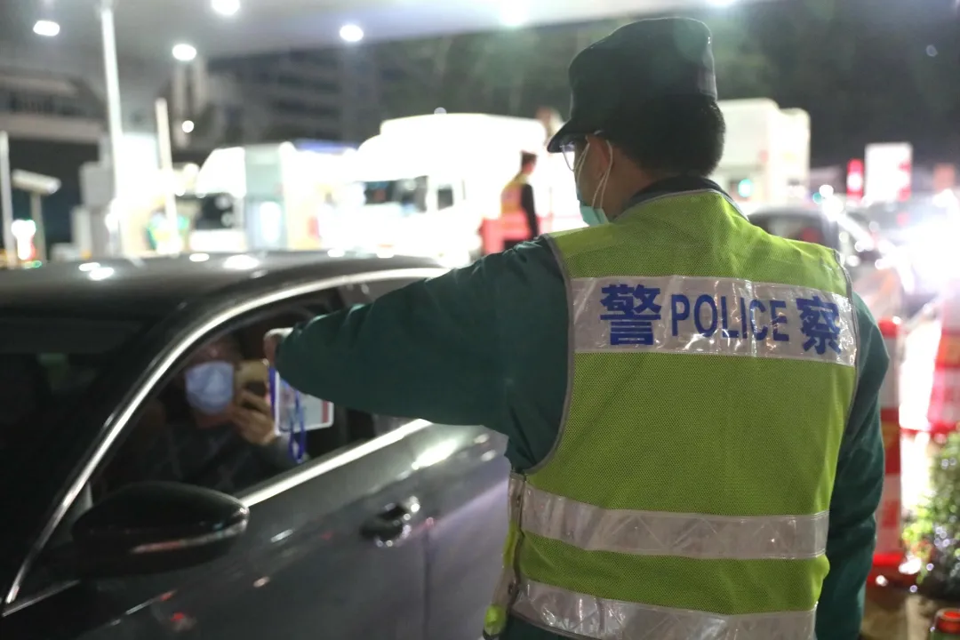 (民警在卡點(diǎn)對過往車輛進(jìn)行防疫核查)