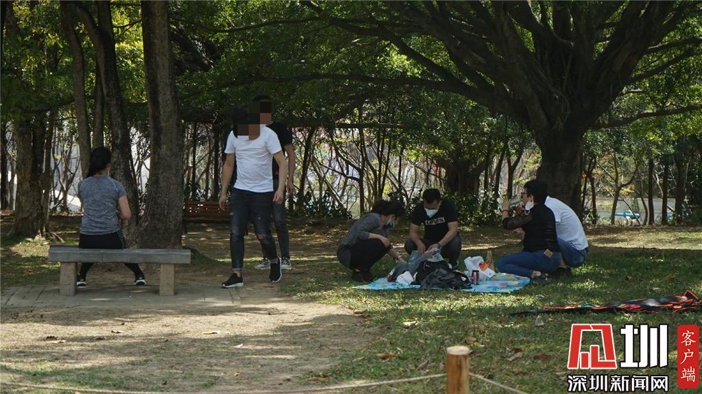 蓮花山公園里,記者也發(fā)現有一些年輕人在草地上休息,其中部分未配戴好口罩。