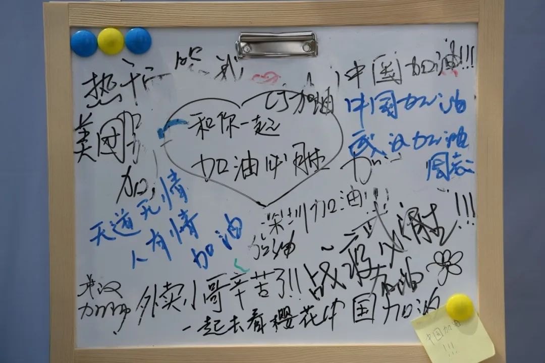 一瓶飲料、一份盒飯、一個口罩,在這個特殊的時期,展示了這個城市的溫暖。(新華社記者 趙瑞希 梁旭 攝)
