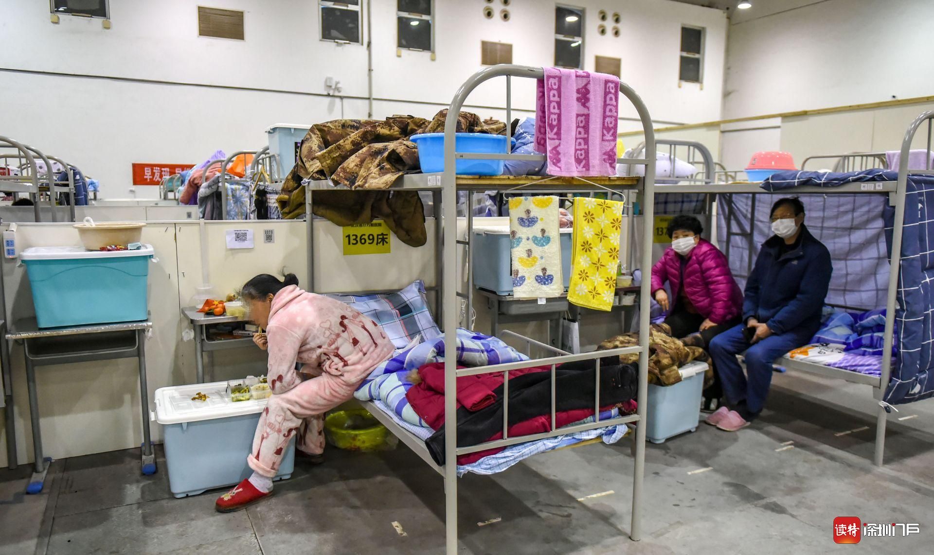 經過社區(qū)人員一再勸說,2月9日下午,李玲和大姐、三妹以及病友們被集中送到客廳方艙醫(yī)院C區(qū),大姐夫、弟弟被送至重癥室。此時,方艙醫(yī)院AB區(qū)已經入住近千名隔離病人?!昂臀覀円黄疬M入方艙醫(yī)院的人有200多,一起涌入方艙,我們懷著忐忑、彷徨的心情入住了方艙。”李玲這樣描述當時的場景:一人一個儲物柜,一個小桌子,一張上下鋪床,床上新鋪了被褥,還有電熱毯,以及一應洗漱用品和迷彩棉衣,看著這一應物資,心里稍安。