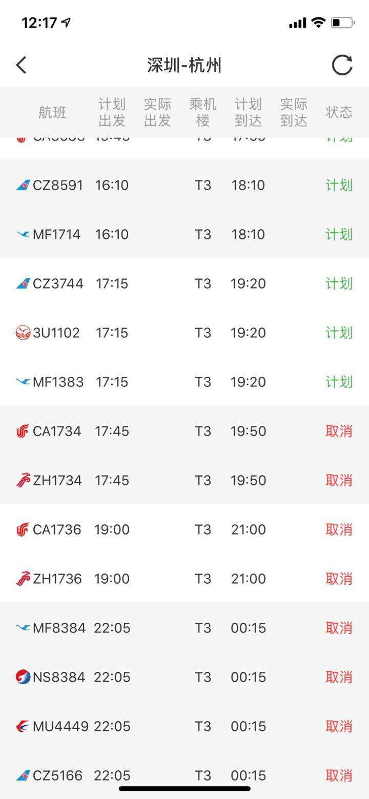 原標(biāo)題:今天17:15后,深圳、廣州飛往杭州航班全部取消,部分因“公共安全原因”取消