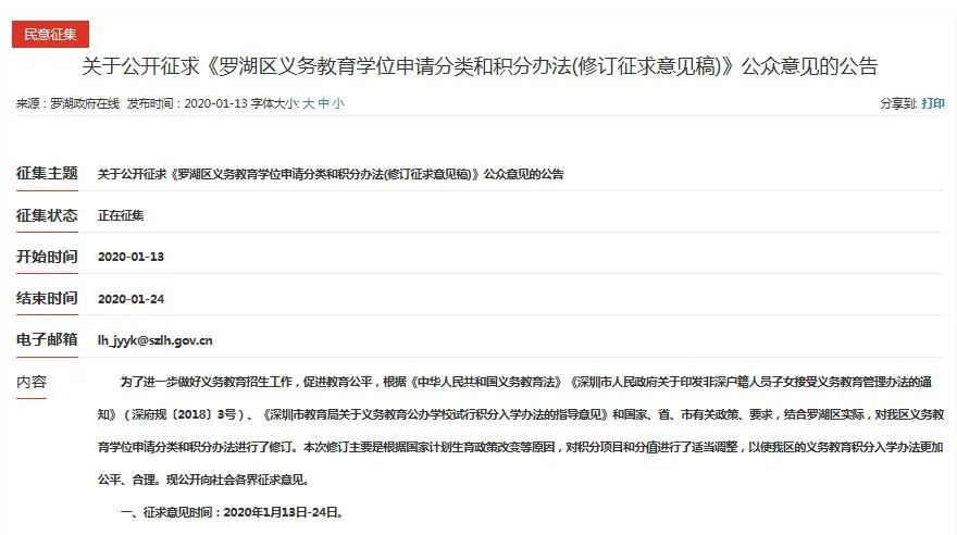 羅湖區(qū)在1月13日發(fā)布了《羅湖區(qū)義務(wù)教育學(xué)位申請分類和積分辦法(修訂征求意見稿)》向市民征求意見。