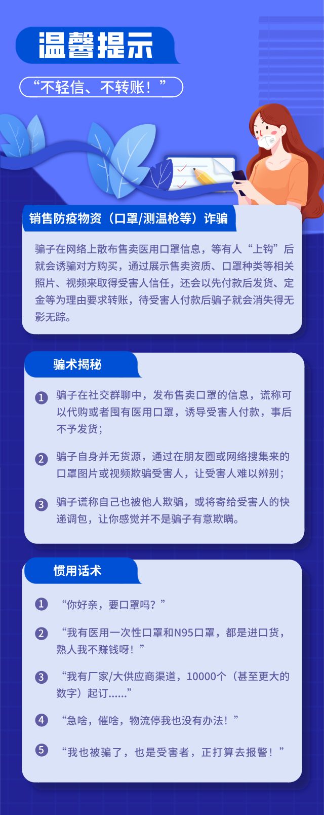 “我來報警!群里有人騙我口罩錢!” 3月4日,事主李小姐匆匆來到深圳市公安局福田分局香蜜湖派出所報案并講述了自己被騙的經(jīng)過。 此前李小姐在某社區(qū)賣菜群里,看到了一名群友發(fā)布“口罩資源”的信息,于是加其為好友,對方向李小姐展示了售賣資質(zhì)以及售賣口罩的樣品,一步步讓李小姐放松了警惕,雙方以1.75元/個醫(yī)用口罩、9元/個N94口罩的價格談妥交易。 隨后李小姐通過轉(zhuǎn)賬先向?qū)Ψ劫徺I了一批口罩。李小姐覺得對方還挺靠譜的,就又分四次向?qū)Ψ睫D(zhuǎn)賬,分別郵寄給自己不同的朋友,累計向?qū)Ψ睫D(zhuǎn)賬了990元。 不料所有的錢轉(zhuǎn)過去之后,這個群友卻消失了,發(fā)信息不回,打視頻不接,雖未拉黑但也沒任何回應(yīng)?!笆謿馊耍或_的錢雖然不多,但是一定要給詐騙分子嚴(yán)懲!”李小姐對民警這樣講述道。 民生小案無小事,數(shù)百元現(xiàn)金被騙,電單車被盜……這些看似平常的一件件“小”案,背后牽連的卻是廣大群眾的幸福感、安全感。 香蜜湖派出所民警聚力破小案,服務(wù)大民生,做到有案必偵,快偵快破。經(jīng)多方面調(diào)查后,最終確定了嫌疑人的身份——游某。3月9日11時許,福田警方將嫌疑人游某抓獲。 ▲嫌疑人通過網(wǎng)絡(luò)發(fā)布虛假信息進(jìn)行詐騙 據(jù)了解,游某于2019年下半年來到深圳,此前加入了一個社區(qū)賣菜群。不久前,游某因手頭緊,于是就在群里發(fā)布消息,謊稱自己有大量口罩待出售。 游某在群里發(fā)布買賣“口罩”信息,會不會還有其他的受害者?這是民警第一時間的直覺。隨著調(diào)查的深入,民警發(fā)現(xiàn)還有其他受害者與游某聯(lián)系購買“口罩”及多筆手機(jī)轉(zhuǎn)賬記錄,金額雖然不大,大多為80元、100元、115元、175元……各個個案的涉案金額看起來都是“小錢”,但我們的民警還是盡心盡力,絲毫沒有放松,一項項認(rèn)真核實并一一做好記錄。 據(jù)初步統(tǒng)計,從1月30日至今,游某通過向他人售賣口罩實施詐騙,累計詐騙4000余元,被騙的受害人多達(dá)16人! ▲民警抓獲嫌疑人 現(xiàn)游某對利用網(wǎng)絡(luò)實施口罩詐騙的行為供認(rèn)不諱,已被警方依法刑事拘留,在香蜜湖派出所民警的聯(lián)系下,目前已有受害群友相繼前來協(xié)助調(diào)查,案件仍在進(jìn)一步調(diào)查中。 ▲民警審訊嫌疑人 警言警語 香蜜湖派出所 民警鄭卓 疫情期間,不少企業(yè)和個人紛紛采購口罩等防護(hù)用品。針對利用口罩等防疫物資實施詐騙等違法犯罪行為的不法分子,福田警方堅決從嚴(yán)從快依法打擊。廣大市民謹(jǐn)記,購買口罩、消毒液等防疫物資,要通過正規(guī)途徑,做到“不輕信、不轉(zhuǎn)賬”,避免上當(dāng)受騙。
