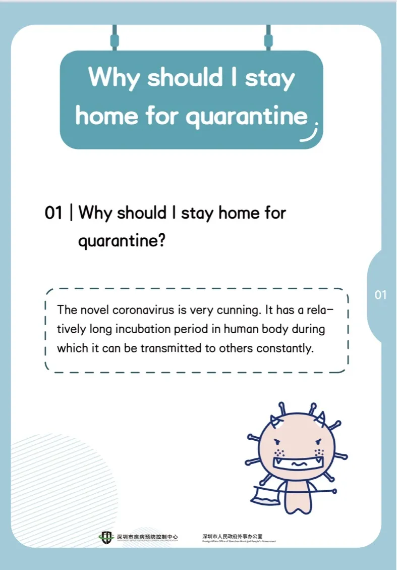 因此,為了您和家人健康,從疫情高發(fā)重點(diǎn)地區(qū)來(lái)深返深后,應(yīng)當(dāng)進(jìn)行14天居家隔離,以確認(rèn)沒(méi)有感染病毒。在這非常時(shí)期,做好居家隔離既是對(duì)您自己和家人最好的保護(hù),也是為疫情早日結(jié)束做貢獻(xiàn)。