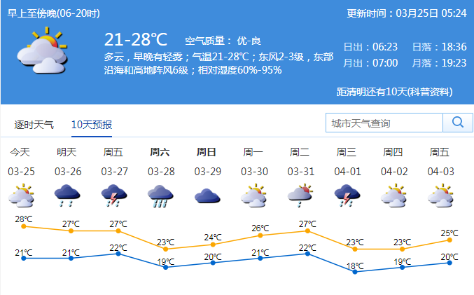 見圳客戶端·深圳新聞網(wǎng)2020年3月25日訊 近期我市氣溫明顯上升,連續(xù)3天最高氣溫達(dá)28℃左右。今日深圳多云,早晚有輕霧;氣溫21-28℃;東風(fēng)2-3級,東部沿海和高地陣風(fēng)6級;相對濕度60%-95%。