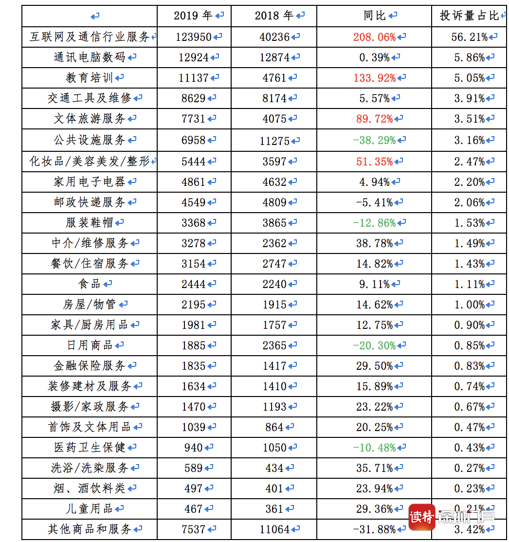 原標題:2019年全年消費投訴超22萬宗 互聯(lián)網(wǎng)及通信行業(yè)服務(wù)投訴量增幅超2倍
