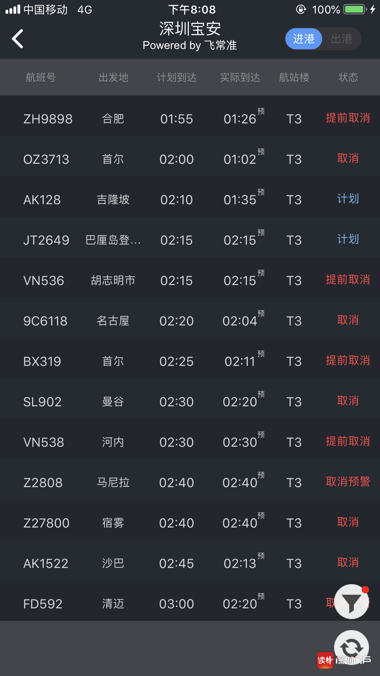 大量境外城市抵深航班已取消