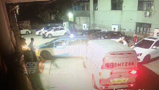 監(jiān)控畫面顯示,25日晚上23點(diǎn)左右,一輛出租車和一輛面包車先后到達(dá)龍崗大道木棉灣路段的一個(gè)充電站。出租車司機(jī)先找到了一個(gè)位置,準(zhǔn)備倒入充電時(shí),后面的面包車突然往前開,兩名司機(jī)因?yàn)橥\囄坏膯栴}發(fā)生爭(zhēng)執(zhí)。隨后,出租車司機(jī)下車?yán)碚?,?dòng)手推搡了面包車司機(jī)一下。