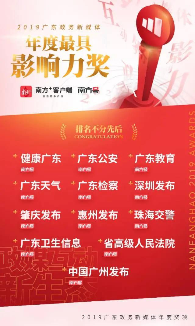 ▲2019年廣東政務新媒體年度最具影響力獲獎名單