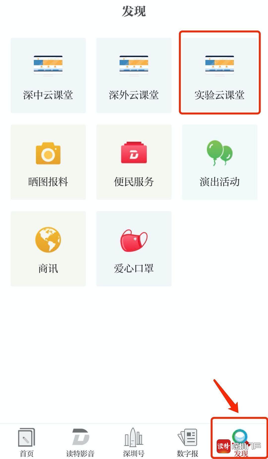 “發(fā)現(xiàn)”頻道也可直接找到“實(shí)驗(yàn)云課堂”