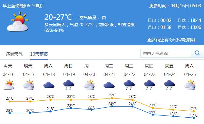 見圳客戶端·深圳新聞網(wǎng)2020年4月16日訊 我市今天到明天多云間晴天,16日早晚有輕霧,氣溫20-27℃;南風(fēng)2級;相對濕度65%-90%。早晚稍涼,午間體感較熱,注意及時(shí)增減衣物;出門要注意防曬,戶外活動(dòng)需注意及時(shí)補(bǔ)充水分。
