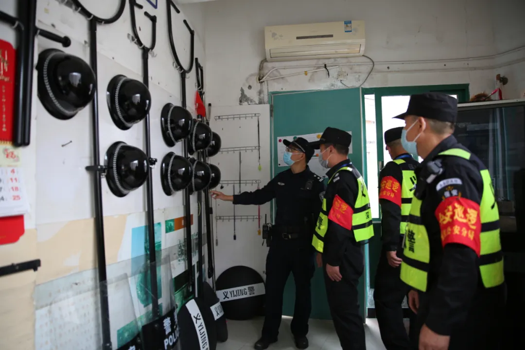 ▲民警在校內(nèi)進(jìn)行防控檢查