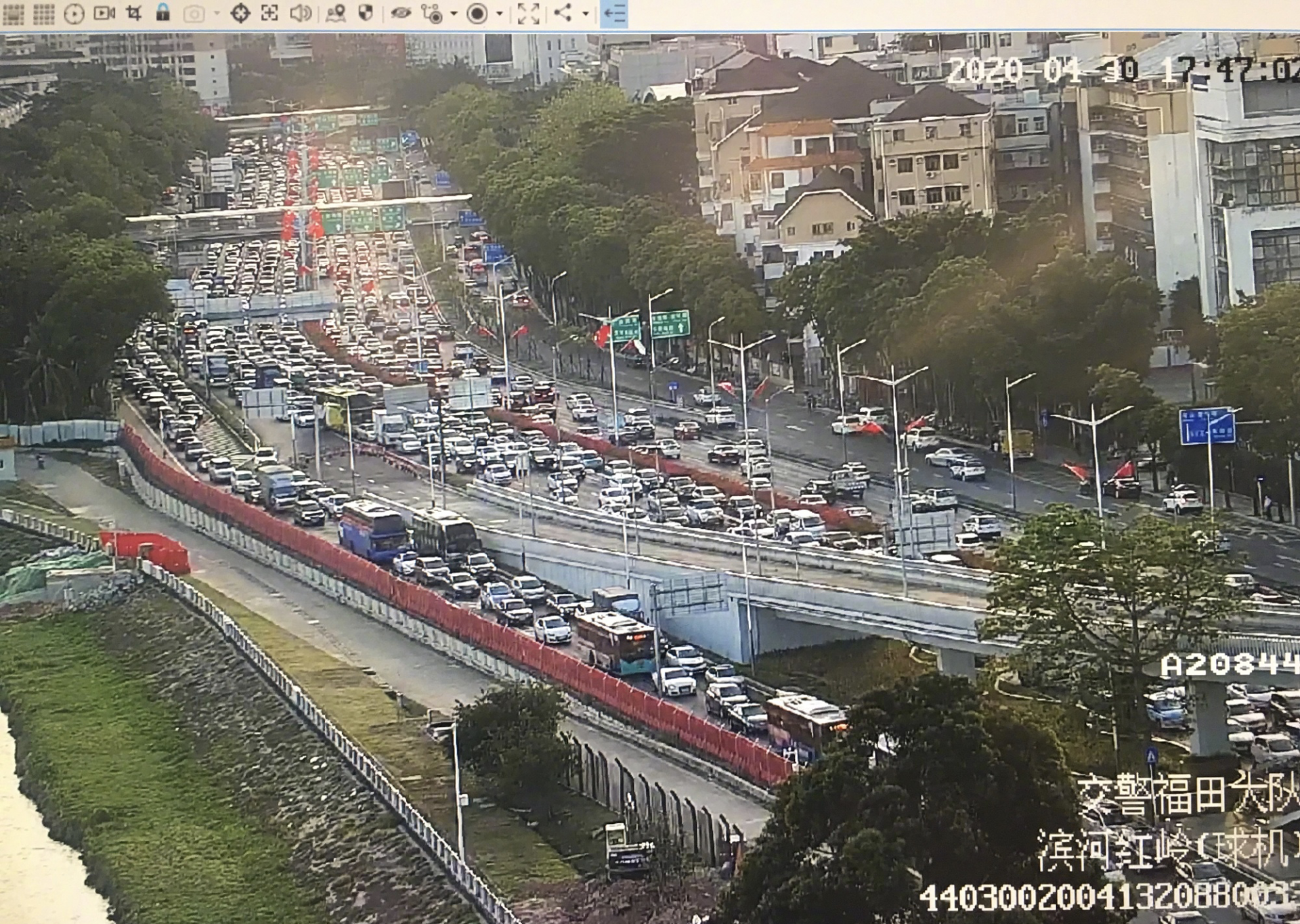 濱河大道是深圳市最先進入晚高峰節(jié)奏的道路,15時30分,濱河大道寶安立交路段西往東方向開始出現(xiàn)車多緩行。車流量慢慢增多,到18時許,濱河大道西往東方向發(fā)生嚴重交通擁堵,從竹子林立交到鹿丹村路段一片“紅燈”。