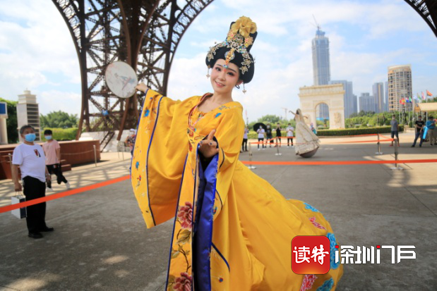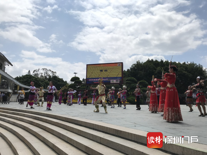 “五十六個(gè)民族親親一家,就像百花園里盛開的花……”5月1日上午10點(diǎn)半,錦繡中華民俗村入口的廣場(chǎng)響起了《母親是中華》的歌聲,身著民族服飾的工作人員們載歌載舞迎接游客的到來,表演吸引了游客們駐足觀看、拍照。民俗村工作人員告訴記者,疫情期間暫停的開園迎賓表演在假期首日恢復(fù),“五一”期間景區(qū)還推出了“民俗游園會(huì)活動(dòng)”。