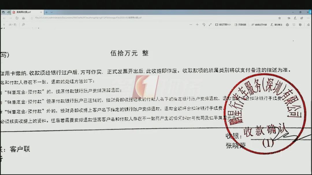 ↑ 50萬(wàn)首付款收據(jù),上有車行公章