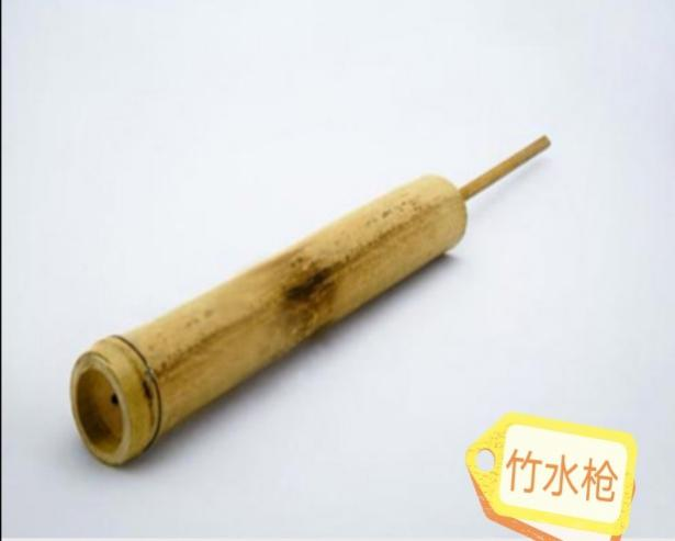 ▲爸爸童年時玩的玩具是利用一些天然材料純手工制作的,其中有幾樣爸爸印象最深刻,竹水槍和滾鐵環(huán)。