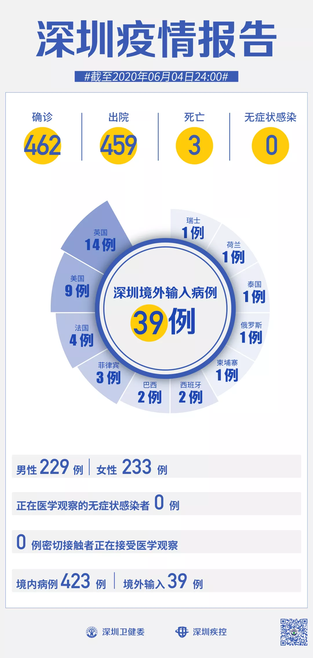 截至6月4日24時,深圳累計(jì)報(bào)告新冠肺炎病例462例。