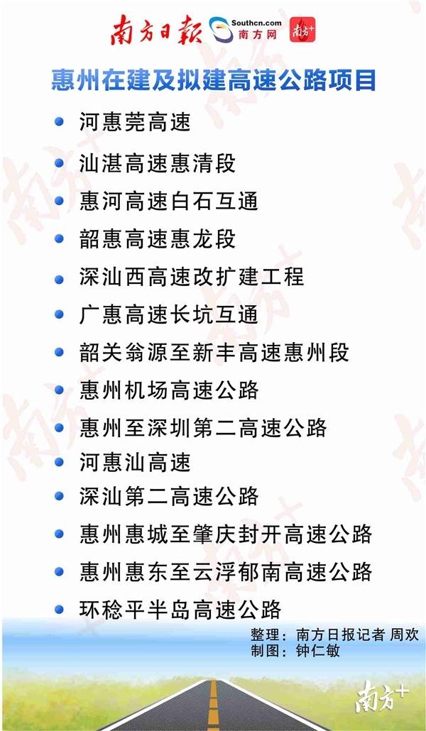 今年惠州市政府工作報告明確,將建成河惠莞高速惠州段、汕湛高速惠清段、惠河高速白石互通,加快建設(shè)韶惠高速惠龍段、深汕西高速改擴(kuò)建工程、廣惠高速長坑互通,啟動環(huán)稔平半島高速公路建設(shè)。同時,將加快惠州千萬級干線機場規(guī)劃建設(shè)。
