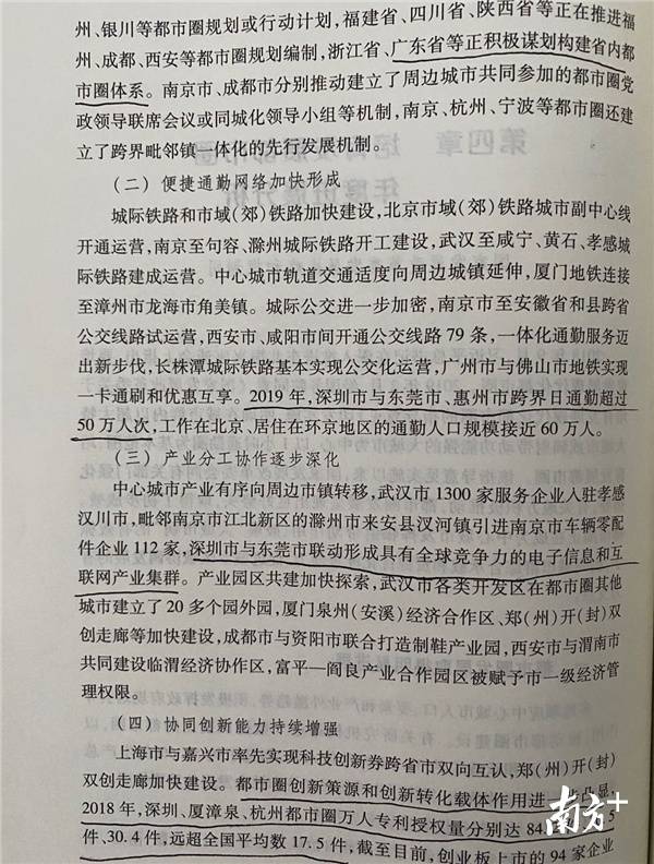 國(guó)家發(fā)改委發(fā)展戰(zhàn)略和規(guī)劃司在關(guān)于都市圈建設(shè)進(jìn)展方面提到,廣東省正積極謀劃構(gòu)建省內(nèi)都市圈體系。在構(gòu)建便捷通勤網(wǎng)絡(luò)方面,廣州市與佛山市地鐵實(shí)現(xiàn)一卡通刷和優(yōu)惠共享。2019年,深圳市與東莞市、惠州市跨界日通勤超過50萬人次。在產(chǎn)業(yè)分工協(xié)作方面,深圳市與東莞市聯(lián)動(dòng)形成具有全球競(jìng)爭(zhēng)力的電子信息和互聯(lián)網(wǎng)產(chǎn)業(yè)集群。
