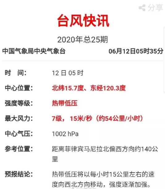 據(jù)@中國天氣,臺風(fēng)鸚鵡將生成,6月14日白天將登陸廣東沿海!