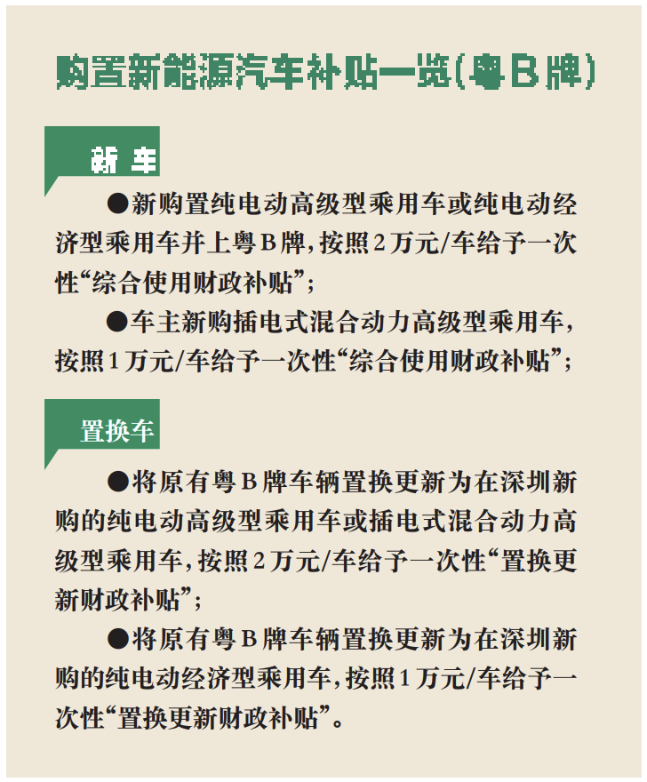 ⑥近日,市發(fā)改委發(fā)布《深圳市應對新冠肺炎疫情影響促進新能源汽車推廣應用若干措施財政補貼申領工作指引》,將原有粵B牌車輛置換更新為在深圳市新購的新能源小汽車并上粵B牌的個人消費者,最高可享受一次性財政補貼4萬元。市生態(tài)環(huán)境局再次發(fā)布溫馨提示,我市老舊車提前淘汰獎勵補貼政策將于6月30日截止,請車主抓緊時間淘汰車輛,逾期將不能享受補貼。