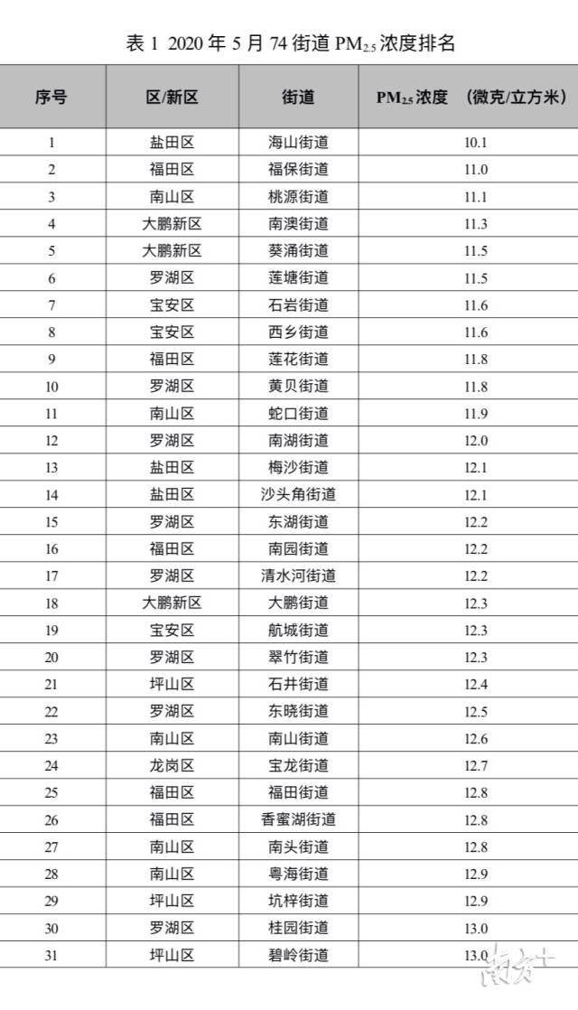 原標(biāo)題:深圳74街道5月PM2.5濃度排名出爐,這些街道名列前十!