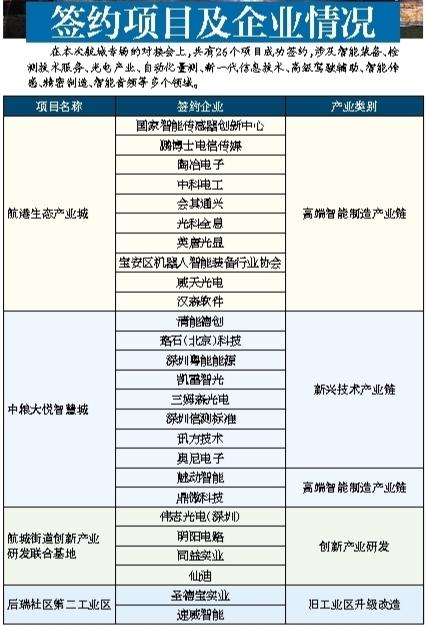 26個簽約公司中,10家為高端智能制造產業(yè),8家為新興技術產業(yè),4家為創(chuàng)新產業(yè)研發(fā),2家為高端智能制造產業(yè),2家為舊工業(yè)區(qū)升級改造,這些將為航城的建設和發(fā)展注入新動力。