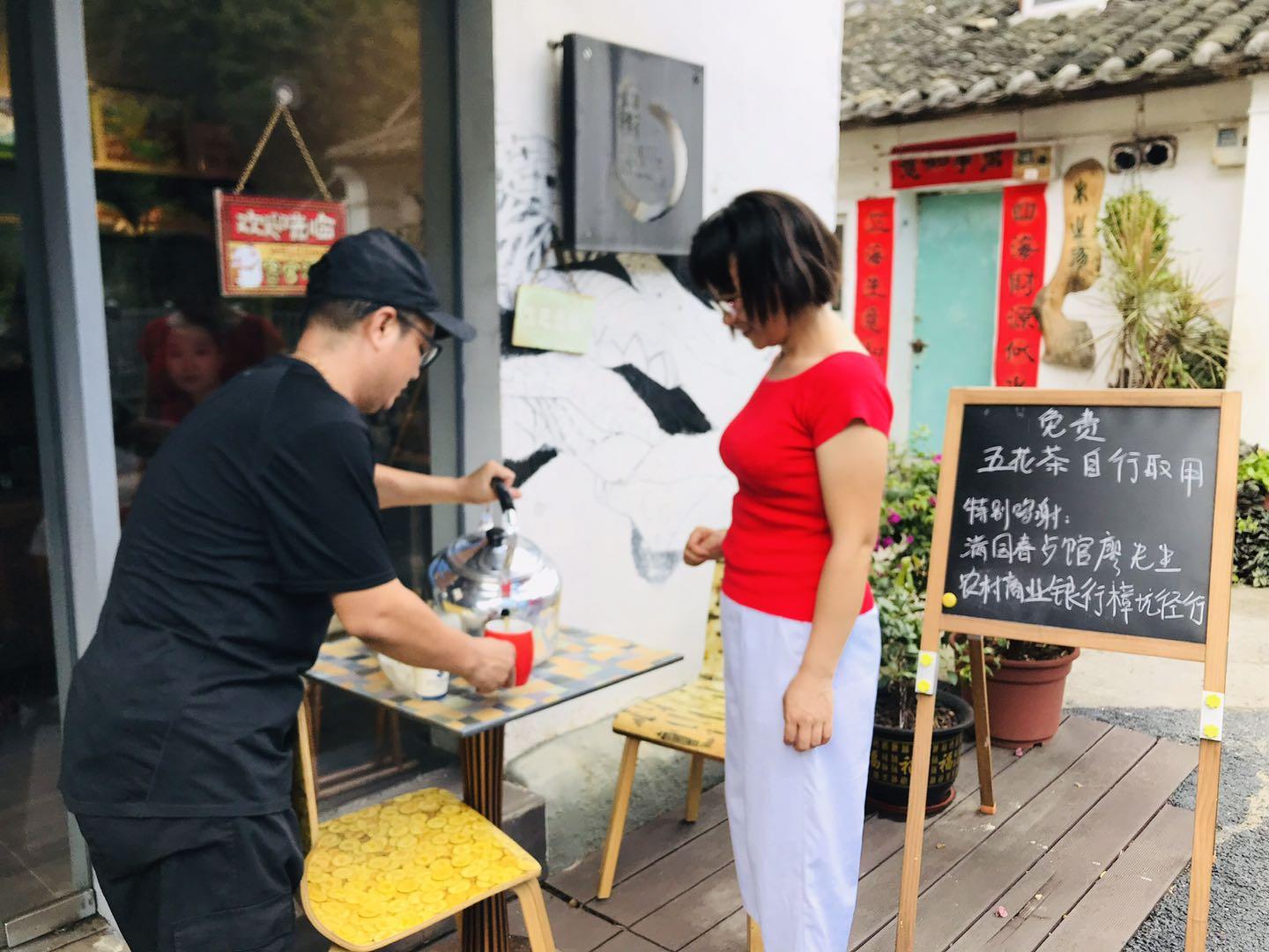 在這次愛(ài)心援助之后,上圍藝術(shù)村更是掀起了一股“愛(ài)心接力”的浪潮,村民和藝術(shù)家們積極地接過(guò)接力棒,紛紛響應(yīng)起來(lái)。國(guó)家級(jí)非遺傳承人張和玉醫(yī)生,為大家按照時(shí)節(jié)、氣候開(kāi)了更專(zhuān)業(yè)的涼茶方子;滿園春農(nóng)莊貢獻(xiàn)了五花茶材料和相關(guān)用品;駐村藝術(shù)家雍明支持制作了“關(guān)于涼茶的愛(ài)心拉力”公示牌貼在了涼茶提供處……
