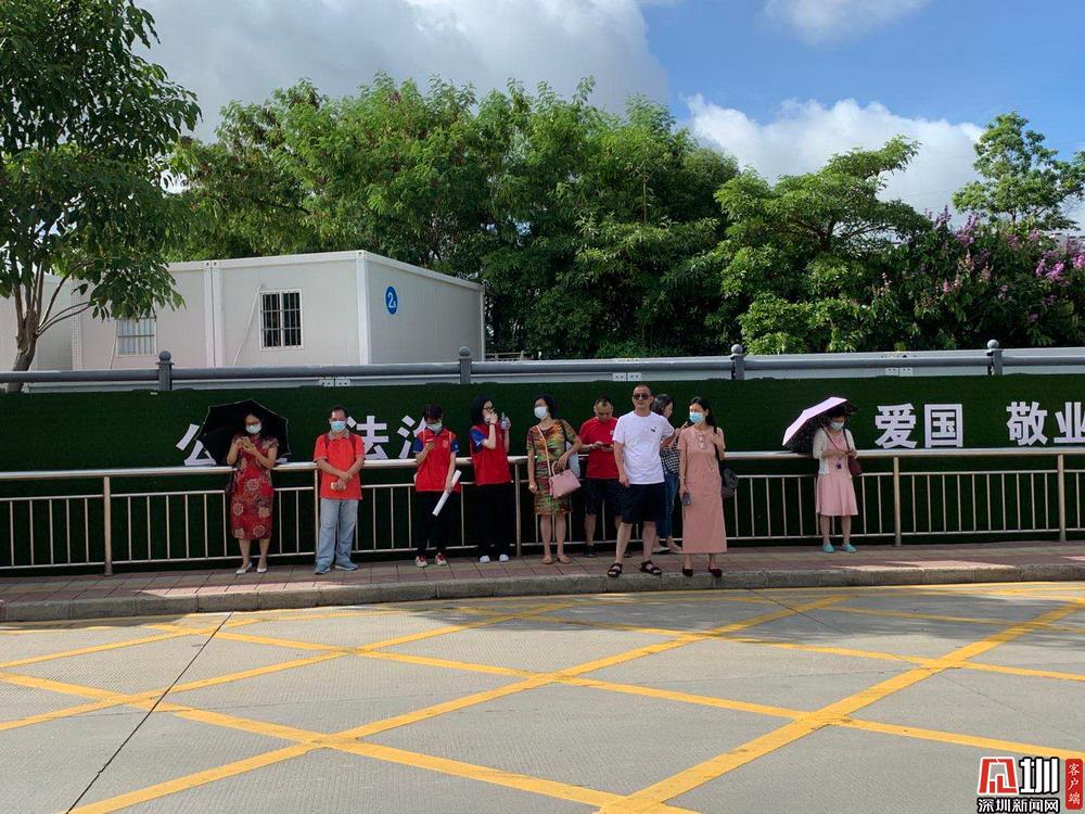 【紅嶺中學(xué)】在考點(diǎn)穿著紅色衣服等待考生的家長(zhǎng)們。