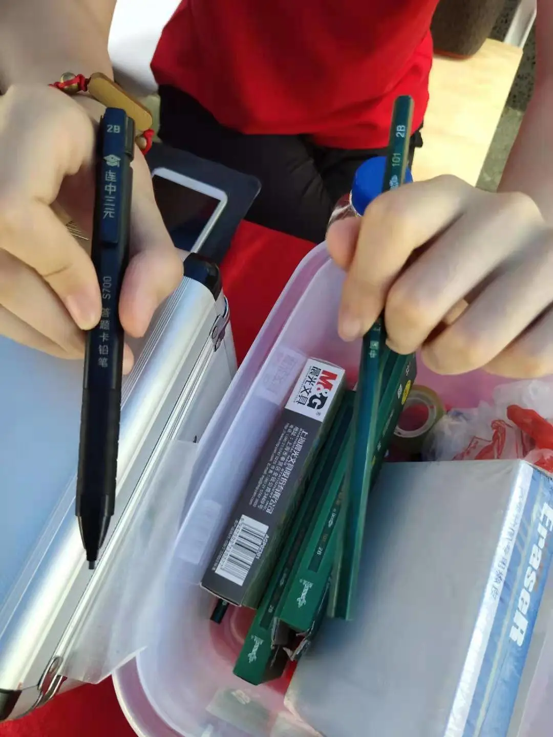 考生服務(wù)站的志愿者告訴記者,他們配備了一些學生可能需要的物資,在7:30-9:00還配備了一名羅湖區(qū)人民醫(yī)院的醫(yī)生。今早有家長來求助一只2B涂卡筆,因只有一只,志愿者們把2B鉛筆削成涂卡筆的形狀交給家長。
