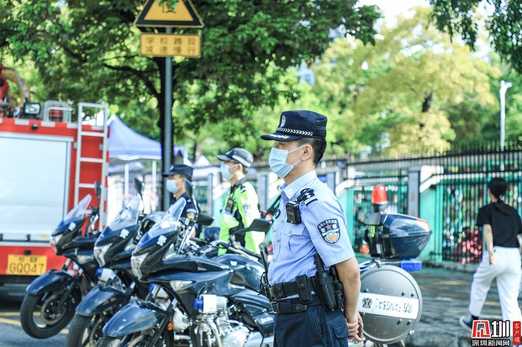深圳警察考點外守護考生安全。