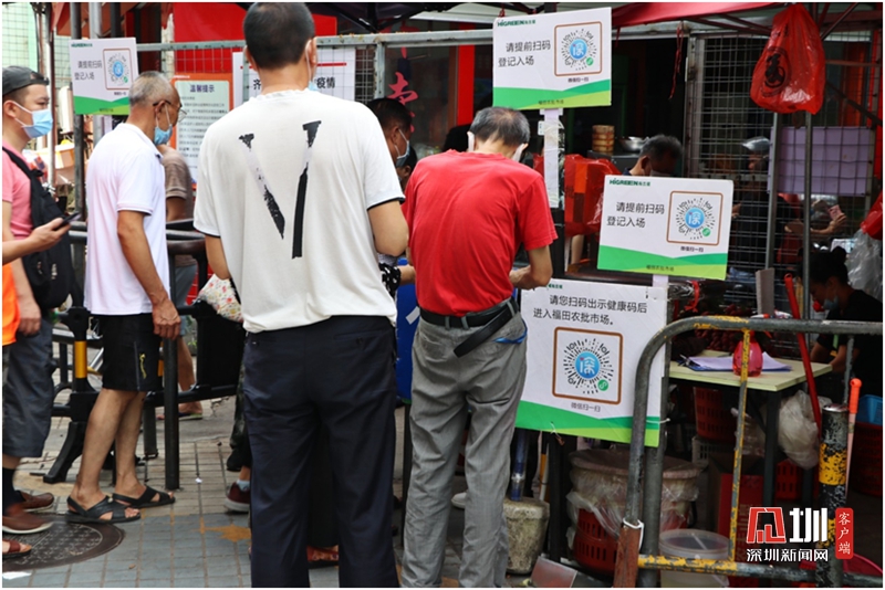 進(jìn)入福田農(nóng)批市場(chǎng)需出示健康碼,測(cè)量體溫。