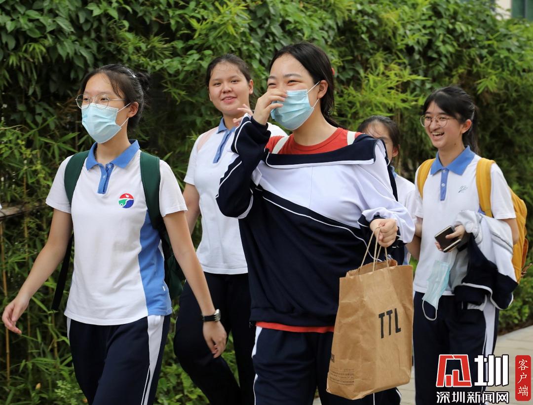深圳高級中學(xué)考點外考生腳步輕盈走出考場,有說有笑。