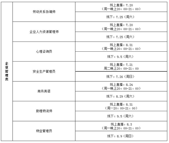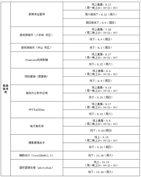 職業(yè)技能培訓(xùn)課程開課時間如下: