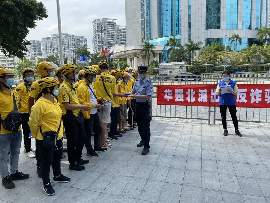 如今,華強北派出所正在探索更多“華強北模式”的可能性。由于綜合商業(yè)圈密集,外賣配送業(yè)也十分火熱。在華強北,涉外賣行業(yè)的糾紛、盜竊類的警情較為普遍。華強北派出所正嘗試將物流寄遞業(yè)的管理模式延伸到外賣行業(yè)上?!拔覀円笸赓u業(yè)新入職員工必須3日內(nèi)到派出所登記身份信息,同時定期組織外賣業(yè)從業(yè)人員進行崗位培訓(xùn),學(xué)習(xí)相關(guān)法律法規(guī),民警與外賣網(wǎng)點負責(zé)人建立微信群,實時發(fā)送各項工作要求、發(fā)案案例和安全提醒信息。”王宇說。