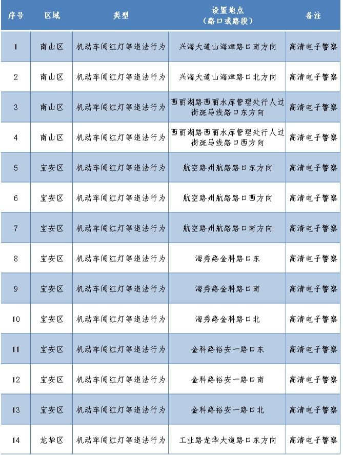 見(jiàn)圳客戶端·深圳新聞網(wǎng)2020年7月28日訊 為保障道路的通行有序和安全,加大對(duì)機(jī)動(dòng)車違法行為的非現(xiàn)場(chǎng)執(zhí)法力度,保障深圳道路交通安全暢順。近期,深圳交警根據(jù)《道路交通安全違法行為處理程序規(guī)定》(公安部令105號(hào))第十六條規(guī)定,依法公布啟用262套交通技術(shù)監(jiān)控設(shè)備。