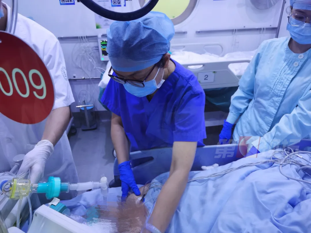 當時人是神智不清的,有頻繁的抽搐,考慮這個頻繁抽搐,還是跟她心跳驟停之后,大腦缺血、缺氧狀態(tài)有關系。我們樓下?lián)尵仁?,很快就給她一個評估全身的狀態(tài),再一個就是第一時間,我們就給她緊急安排了高壓氧的治療。