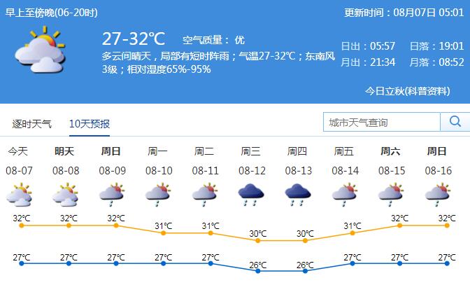 見圳客戶端·深圳新聞網(wǎng)2020年8月7日訊 降雨暫緩,高溫又卷土重來(lái)。8月7日白天,全市以多云天氣為主,偶有短時(shí)陣雨,早晚最低氣溫在27℃左右,中午前后最高氣溫在32℃左右,漸趨悶熱。市內(nèi)維持2-3級(jí)東南風(fēng);空氣濕度大,相對(duì)濕度65%-90%。