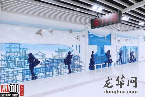 2015年,曾經(jīng)的深圳經(jīng)濟特區(qū)“梅林關(guān)檢查站”正式退出歷史舞臺,由梅林關(guān)等組成的深圳特區(qū)管理線,是特區(qū)建設(shè)的歷史見證,承載著城市的記憶。一進(jìn)站廳層,雕塑作品《梅林關(guān)記憶》便讓人留下深刻印象,該作品的畫面主背景為已拆除的“梅林關(guān)聯(lián)檢大樓”,透過兩側(cè)的半拱造型、線性結(jié)構(gòu)建筑使得深圳的厚重歷史與飛速發(fā)展清晰可見。