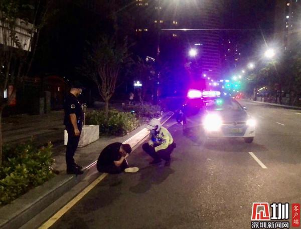 近日晚,羅湖交警總臺(tái)接到報(bào)警,稱在解放路有一名男子走在機(jī)動(dòng)車道上來(lái)回徘徊,情況十分危險(xiǎn)。接到警情后,羅湖鐵騎黎江濤、胡洋迅速趕往現(xiàn)場(chǎng)。