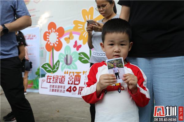 “我是在‘i羅湖’公眾號上看到消息,說是周日梧桐綠道會舉辦攝影活動,于是帶著家人來游玩拍照”。羅湖市民周先生說。這里有深圳和綠道元素的標語、頭箍、合影異形牌等道具,拍照打卡很有紀念意義,而且還有專業(yè)的攝影師和智能照片打印機?!拔覀円患胰撕芫脹]有合影了”拿著剛打印出來的照片,周先生看著家人笑得很開心。