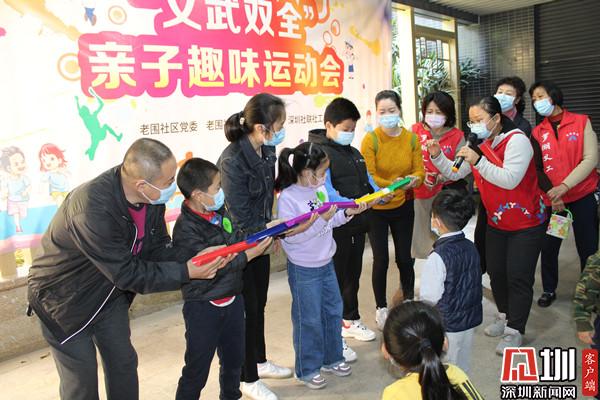 見(jiàn)圳客戶端·深圳新聞網(wǎng)2月1日訊(記者 劉嘉敏 通訊員 楊紀(jì)歐)今年過(guò)年不回家,要玩就在社區(qū)玩?!耙蛉攵础薄靶◎蝌秸覌寢尅薄傲璨ㄎ⒉健薄皩殞氈嘎贰边@些又好聽(tīng)又好玩的游戲,是羅湖區(qū)桂園街道老圍社區(qū)黨群服務(wù)中心的社工為社區(qū)居民精心準(zhǔn)備的。1月30日上午,社區(qū)為鼓勵(lì)社區(qū)居民留深過(guò)年,專門(mén)開(kāi)展了一場(chǎng)“文武雙全”親子趣味運(yùn)動(dòng)會(huì),吸引了眾多小朋友及其家長(zhǎng),12對(duì)親子來(lái)到現(xiàn)場(chǎng)。