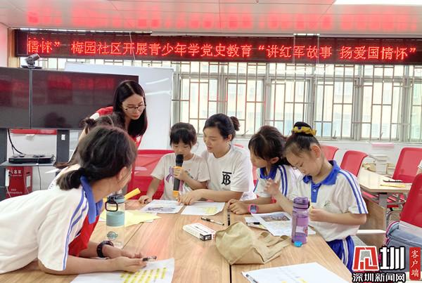 活動現場,社工采用常規(guī)教研學習方式以講述紅軍長征故事《張思德“嘗百草”》《女戰(zhàn)士小董》等為切入點,讓孩子們在每篇故事里學習革命烈士的事跡。