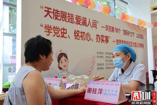 當(dāng)天,羅湖區(qū)人民醫(yī)院老年病院黨支部還與羅湖醫(yī)院集團社管中心翠嶺黨支部,在喜薈城舉辦了“學(xué)黨史、銘初心、辦實事”黨員專家進社區(qū)義診服務(wù)暨慶祝第110個“國際護士節(jié)”義診活動,在活動現(xiàn)場20余名醫(yī)護人員給社區(qū)居民提供健康咨詢、健康宣教等服務(wù)。
