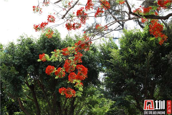 見圳客戶端·深圳新聞網(wǎng)5月18日訊(記者 李慧 見習記者 郝鈺詩 )又是一年五月天,春已盡,夏未央。伴隨深圳夏季而來的還有熱烈的鳳凰花?!叭~如飛凰之羽,花若丹鳳之冠。”在深圳的許多地方,都種植了鳳凰木,五六月夏初之際,鳳凰花便開始掛滿枝頭,抬頭仰望便是紅彤彤的一片,就像太陽遺落在人間的衣裳,點綴著灣區(qū)之光。5月18日,深圳新聞網(wǎng)記者來到深圳東湖公園和洪湖公園,用鏡頭定格鳳凰花之美。