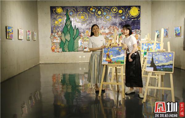 騎著小白兔在天上看四大名樓、把四大名樓帶到宇宙里、在四大名樓上面遇見天空之城……現(xiàn)場(chǎng),幾幅畫作吸引觀賞者駐留觀看。“歷代文人墨客用千古名篇頌揚(yáng)四大名樓,而這個(gè)《中國(guó)四大名樓》系列作品,孩子們將與深圳共成長(zhǎng)的切身感受,與歷史畫卷中的四大名樓發(fā)生靈感碰撞,以簡(jiǎn)單的水墨畫表現(xiàn)形式,呈現(xiàn)出不可思議的藝術(shù)效果。”作品指導(dǎo)老師于雪在采訪時(shí)介紹說道,這一系列的作品,是三四年級(jí)的孩子創(chuàng)作,身高沒有很高,但是作品的畫幅很大,而且用的材質(zhì)是宣紙,比較容易破,因此孩子們?cè)诶L畫過程中也學(xué)會(huì)了調(diào)整身體的位置和紙張比例,以及更加小心翼翼地保護(hù)自己的畫作,這也是他們創(chuàng)作中有趣的過程。