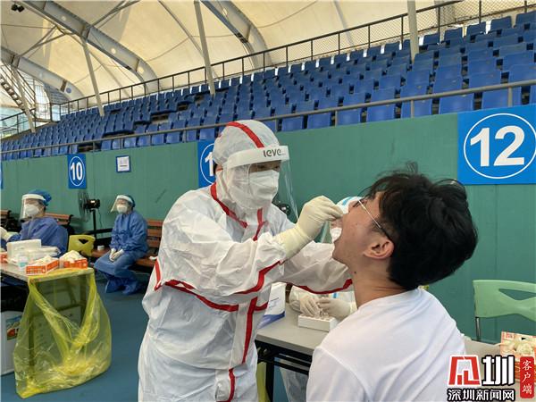 “根據(jù)當前疫情防控工作要求,結(jié)合羅湖區(qū)實際情況,我們在28日啟用去體育館這個臨時采樣點,現(xiàn)場我們可以看到整個采樣工作是很有秩序的,因為我們在每個時間段安排不同的人群進行采樣,所以不會出現(xiàn)排隊擁擠等情況?!绷_湖區(qū)衛(wèi)健局公共衛(wèi)生和職業(yè)衛(wèi)生科科長江正談道,羅湖成立了一支擁有1200人的平戰(zhàn)結(jié)合應急采樣隊,隨時為疫情防控工作做好備戰(zhàn)準備,一旦有需要,隨時就可以投入戰(zhàn)斗?!艾F(xiàn)在這個臨時檢測點每天的采樣量大概在5000個左右,我們很有信心,能夠打贏這場戰(zhàn)‘疫’。”江正說。