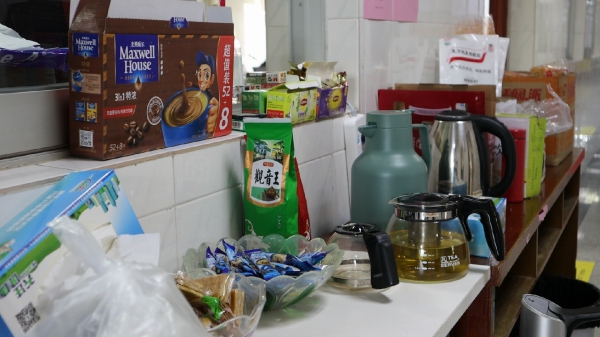 在不大的辦公室,來(lái)自各個(gè)地區(qū)的疾控人員坐在一起,聚精會(huì)神的研究手中的數(shù)據(jù),與同事核對(duì)信息準(zhǔn)確性,不時(shí)有工作人員撥出電話(huà)、接到電話(huà),神情專(zhuān)注地聆聽(tīng)聽(tīng)筒后的每一個(gè)數(shù)據(jù)。在門(mén)外,一條長(zhǎng)桌上擺滿(mǎn)了各種零食、飲品,一盒潤(rùn)喉糖已經(jīng)見(jiàn)底,一箱功能飲料也已經(jīng)所剩無(wú)幾。