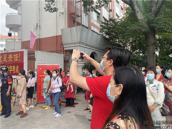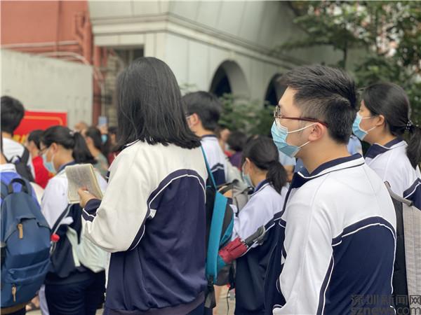 當(dāng)天上午7:50,記者來到羅湖區(qū)翠園中學(xué)和羅湖外語學(xué)校門口,只見考生們已陸續(xù)排隊領(lǐng)取準(zhǔn)考證,有序進(jìn)入考場。許多穿著“紅旗袍”戴著“紅口罩”的家長們在紛紛叮囑孩子們后,已在校門口等候。